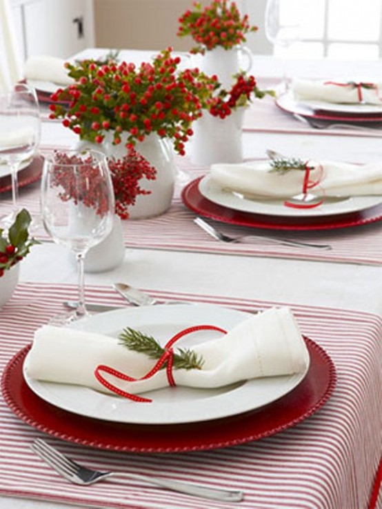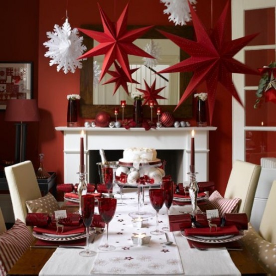 ένα πολύ λαμπερό και ζωντανό χρώμα που προσθέτει ζεστασιά σε κάθε χώρο. Δεν μπορείτε να διακοσμήσετε μόνο το χριστουγεννιάτικο δέντρο με τα κόκκινα στολίδια, αλλά και τους τοίχους σας, το τζάκι και το τραπέζι φυσικά με κόκκινο επιτραπέζια σκεύη, και τραπεζομάντιλα. Πάρτε κόκκινα λουλούδια, κεριά. Κόκκινες κάλτσες, στολίδια, καραμέλες. Αν έχετε κόκκινη διακόσμηση στο σπίτι σας – τότε αυτό είναι ακόμα πιο εύκολο! Απλά προσθέστε μερικές λεπτομέρειες και τα Χριστούγεννα σας θα είναι ακόμη πιο φωτεινά! Σε άλλους χώρους, εκτός από το χώρο τραπεζαρίας, μπορείτε επίσης να δημιουργήσετε αυτή τη συναρπαστική ατμόσφαιρα διακοπών με τη βοήθεια κόκκινου λινών, καλυμμάτων και μαξιλαριών. Το κόκκινο δεν είναι μόνο παραδοσιακά, αλλά μπορείτε εύκολα να δημιουργήσετε μια σύγχρονη καιμινιμαλιστική διακόσμηση με πολλούς φωτεινούς κόκκινους τόνους που θα απογειώσουν τηνχριστουγεννιάτικη διακόσμηση σας.